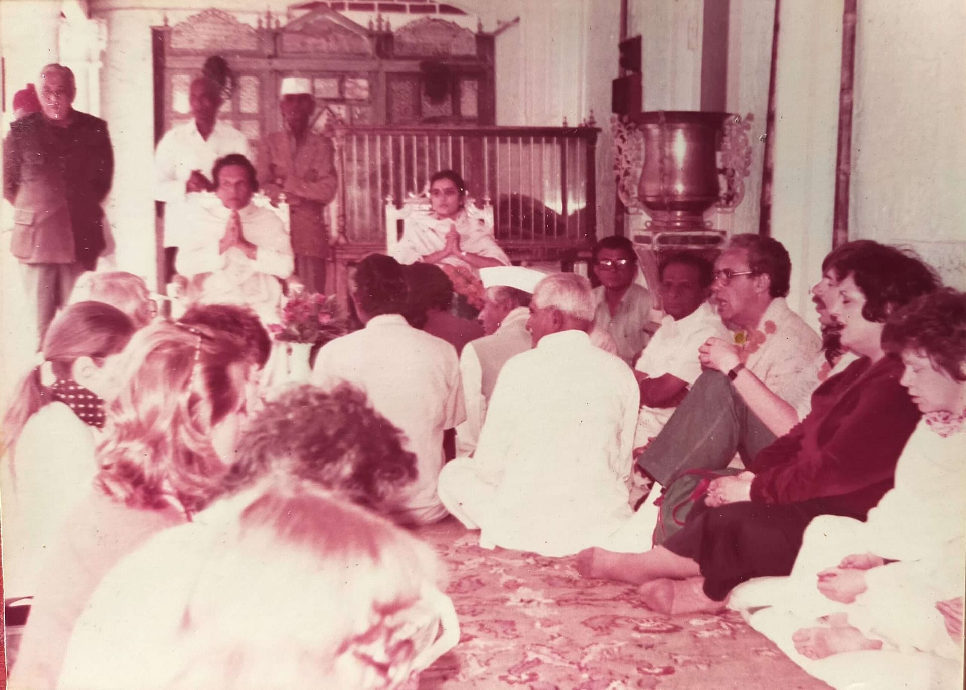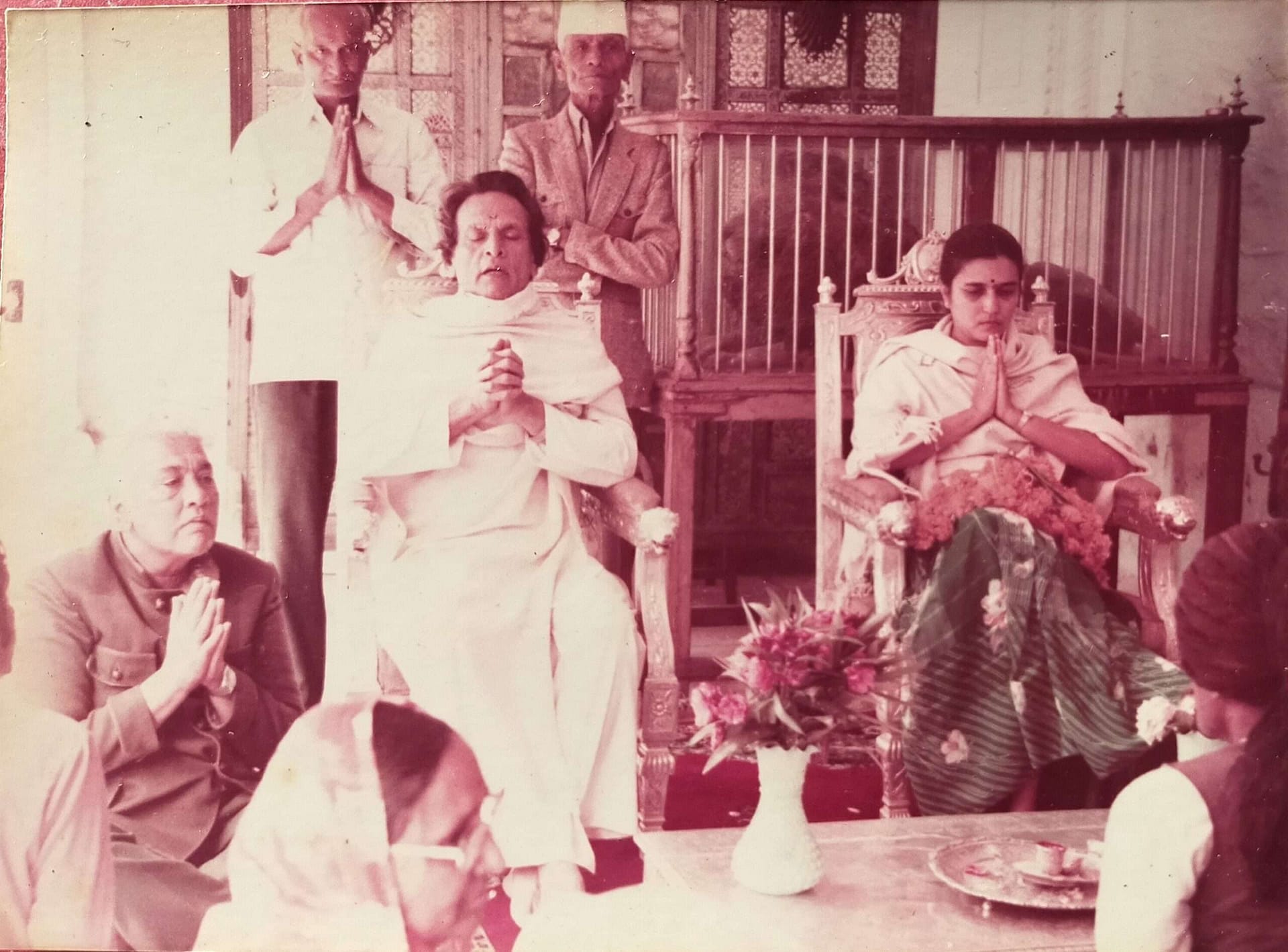 મુનિ શ્રી ચિત્રભાનુ મહારાજ વલભીપુરના રાજમહેલમાં : પાછળ હાથ જોડીને ઊભા મારા પપ્પા