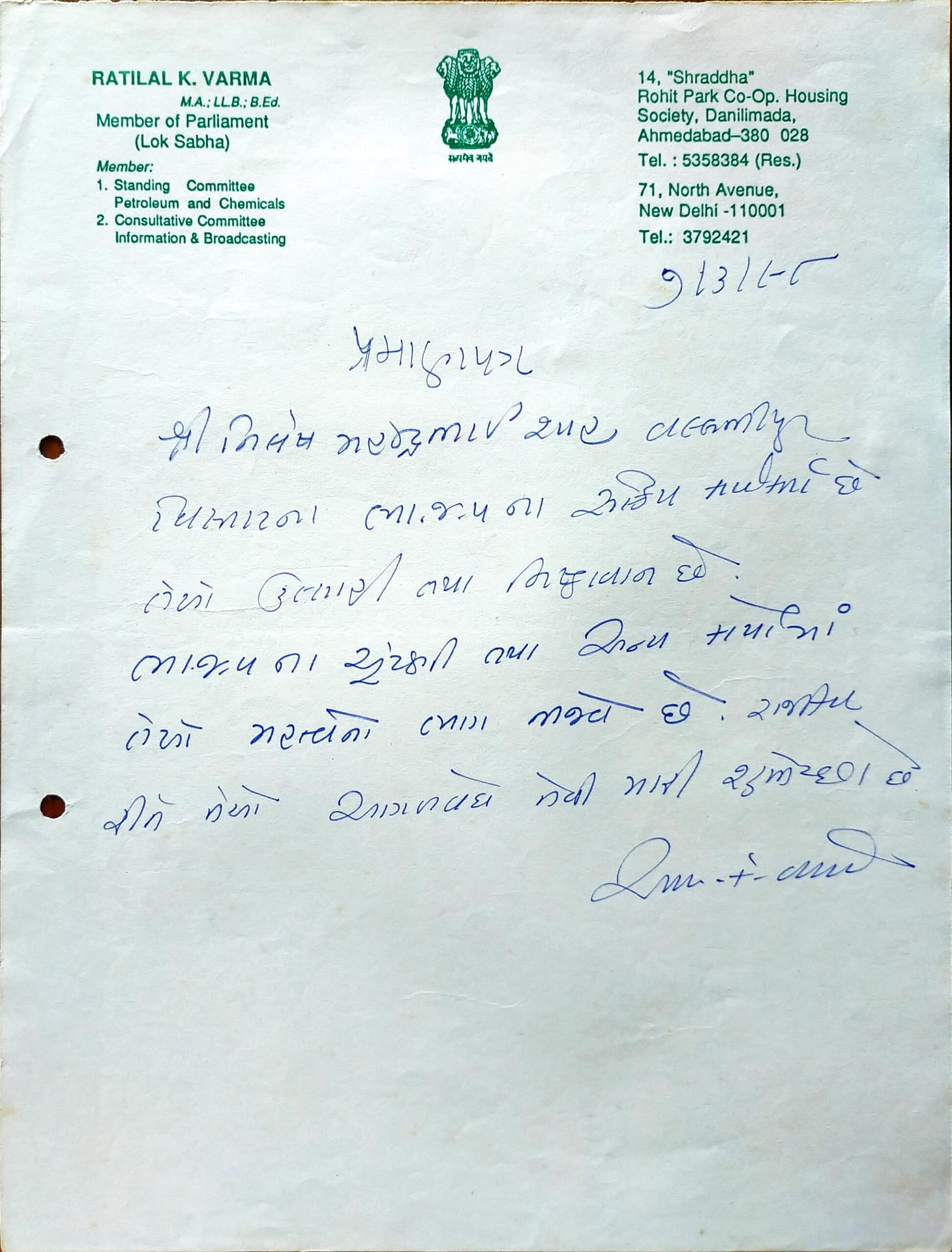 ૧૯૮૪થી ધંધુકા લોકસભા બેઠકની કુલ છ ચૂંટણીઓમાં પાર્ટીના ઉમેદવાર શ્રી રતિલાલ વર્માને વિજયી બનાવવા માટે મેં કોઈ પણ પદ, પ્રતિષ્ઠા કે આર્થિક મોહ રાખ્યા વગર તન-મન-ધનથી સક્રિય કામગીરી કરી. મારી આ નિઃસ્વાર્થ વફાદારીને કારણે રતિલાલ વર્માજીને મારા પ્રત્યે વિશેષ આદર અને સ્નેહ હતો.