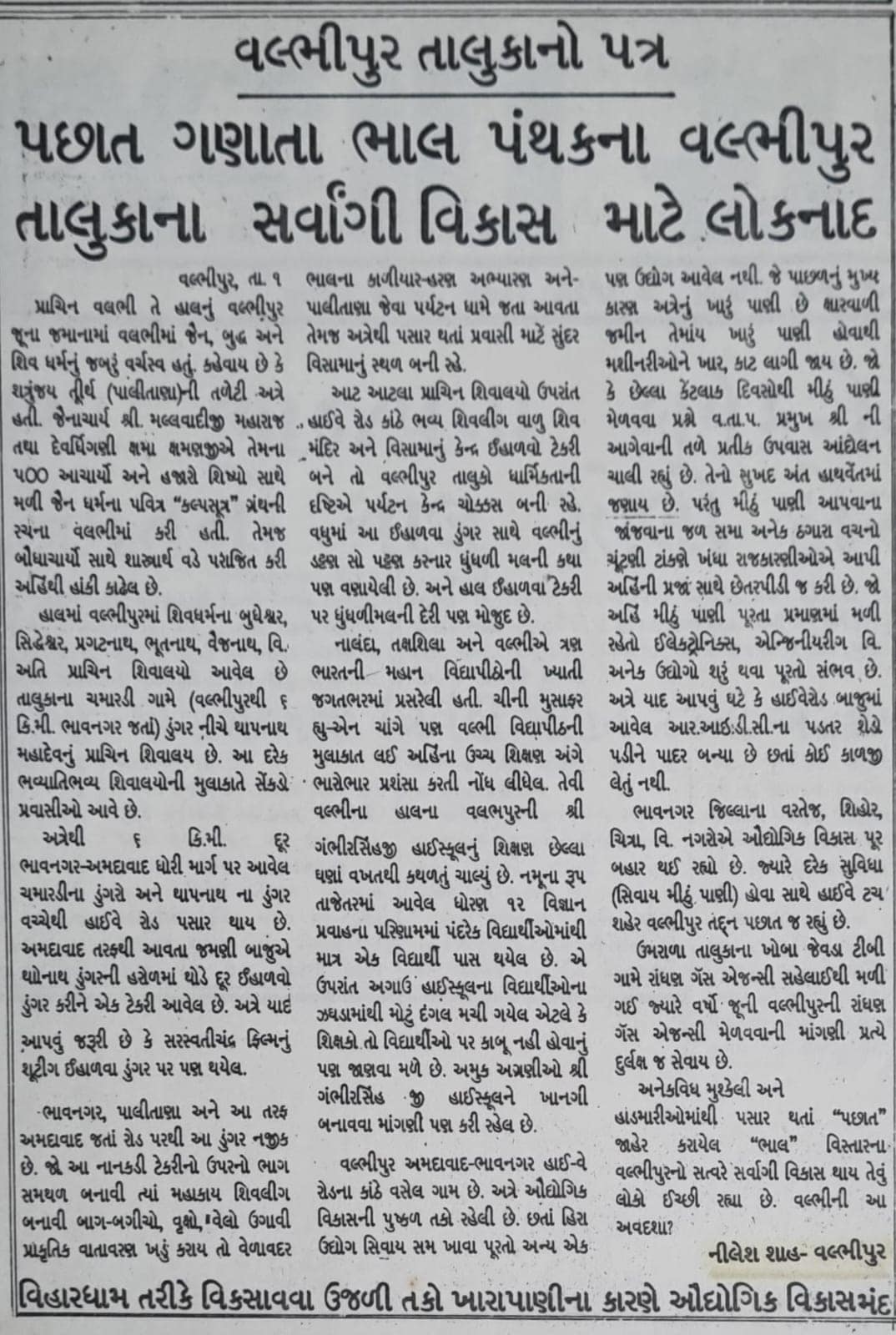 વલભીપુરનું ભૂગોળ, તેનું ઐતિહાસિક મહત્વ અને તેની સામાજિક શક્તિ — આ બધું હોવા છતાં વિકાસ માટે એક સંકલિત દૃષ્ટિકોણનો અભાવ રહ્યો.